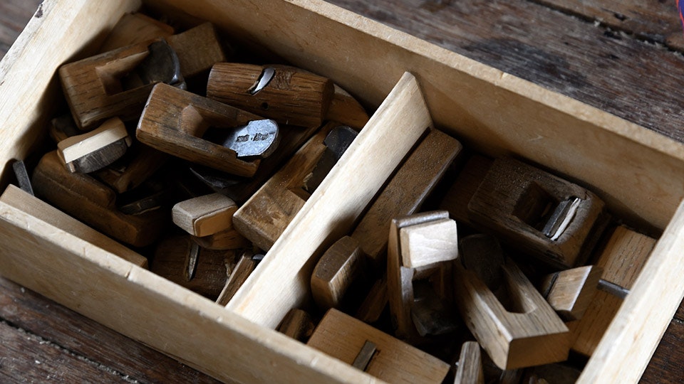 それぞれのパーツがピッタリ合うよう、少しずつ削って微調整。小さく、精度高く加工できるカンナを使う。
