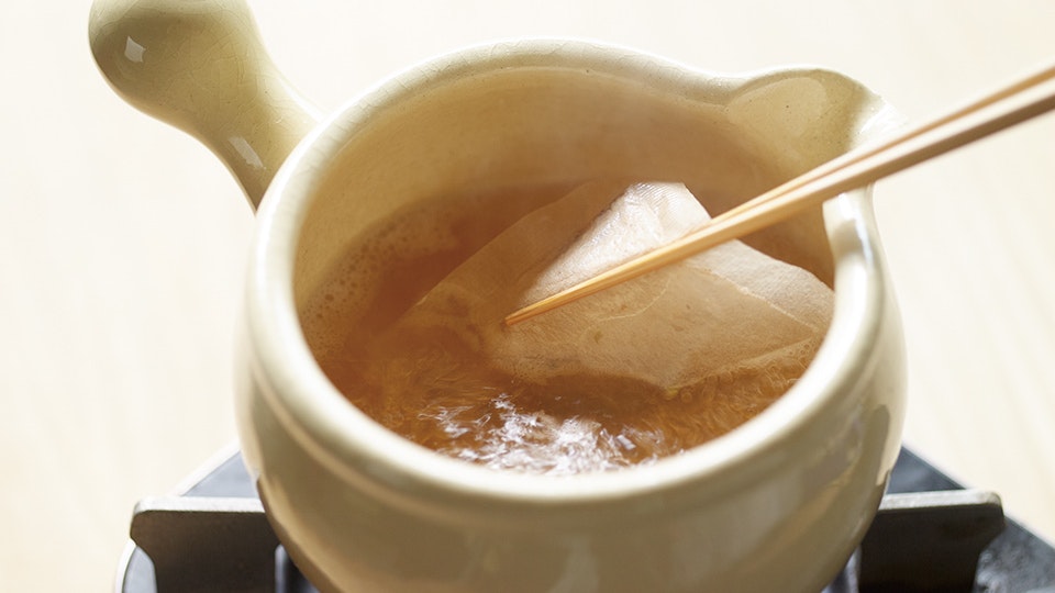 ③ だしパックを取り出して、①を加えて火が通ったら器に盛る。