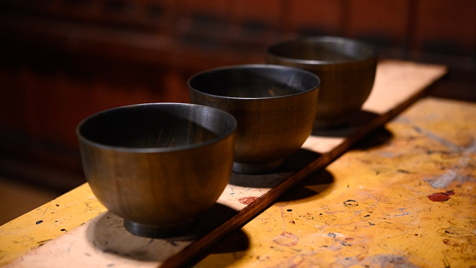木地加工技術に秀でた山中漆器は、石川県に3つある漆器産地のなかでも「木地の山中」と呼ばれる。調度品や高級品ではなく日常使いの漆器を、今も多く作っている。