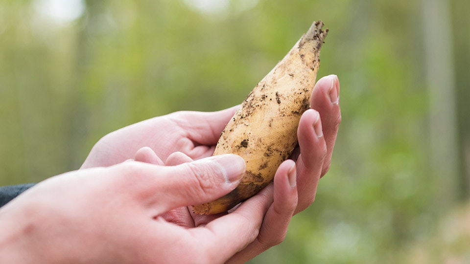 ある時、旬の時期にお客さまが山へお越しになり、掘った筍を食べてみたいとおっしゃったのです。そこで山に釜を運んで、茹でてみました。すると、とてもおいしいんです!すぐ近くに加工場があり、普段も堀ってすぐ処理をしているのですが、本当の採れたてを茹でると、こんなにも味が違うのかと私自身驚いたんですね。
