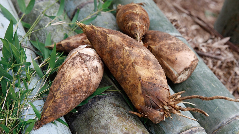 釜に入る数も限られているので、山茹でをするのは、収穫分の1%未満。アクが少ない3月下旬〜4月中旬の筍だけで行います。採ってから2時間以内に皮のまま茹でるんです。筍は掘り出してすぐ酵素が働いて、成長性成分がアクに変わります。それを抑えるには、すぐに冷やすか熱を入れるか。だから山茹でがいいんですね。