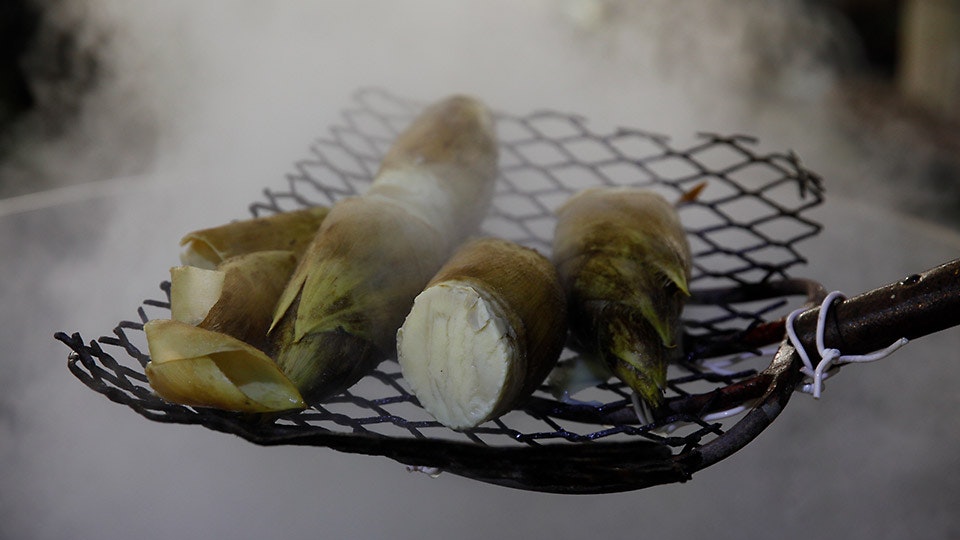 今年で5年目になる「山茹で筍御膳」。毎年、お客さまにもとても喜んでいただいています。“山で茹でる”ことが主計さんの筍の魅力のひとつですが、始められたきっかけは何ですか?