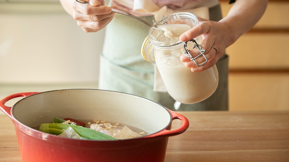 今回の発見は、だしと塩麹の相性がいいこと。とくに茅乃舎さんの「やさしい和漢だし」は、どんぴしゃでした。薬膳っぽい香りもありながらそこまで強くなく、複雑で滋味深い味わいになる。体もポカポカになりますので、ぜひ冬の季節に試してみてください。