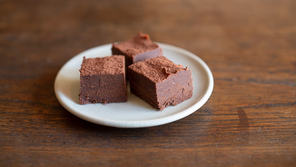作り方は、型にクッキングシートを敷き、刻んだダークチョコ100gと甘酒30mlを湯せんにかけて溶かし、型に流し込んで、冷蔵庫で冷やすだけ。お好きな大きさに切り分けてめしあがってください。
