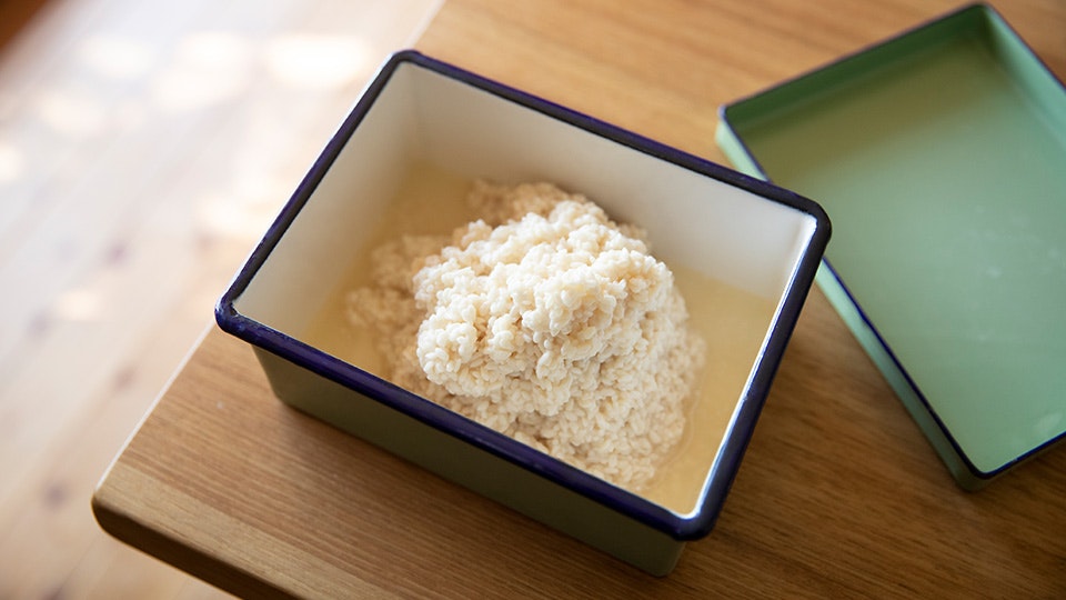 いわゆる“甘酒”に塩を加えたものですので、厳密には“発酵”ではなく、その前の段階にあたる“糖化”です。ただ塩は酵素の働きをおさえるので、甘酒ほど甘くはなく、まろやかさが残ります。また塩が入ることで、保存性も高まるんです。