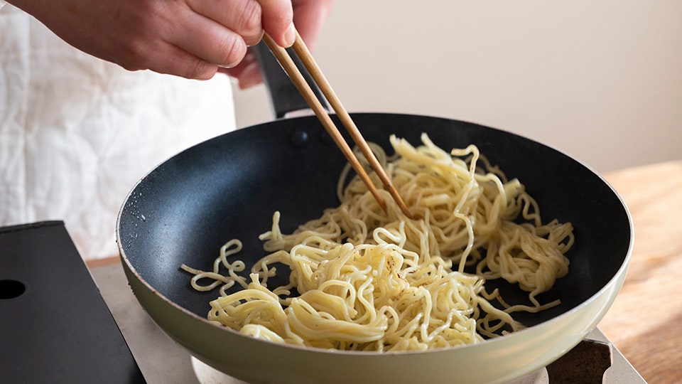 「またキャベツと麺は別々に炒めることで、水分が飛びやすく、軽やかに仕上がります」