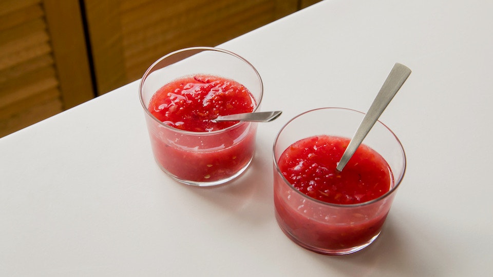 ミキサーもフードプロセッサーも無いわ、という方もご安心を。「トマトのすりおろしスープ」は"おろし金"があればできちゃいます。トマトのフレッシュな甘みが、火照ったからだに染み渡る美味しさです。