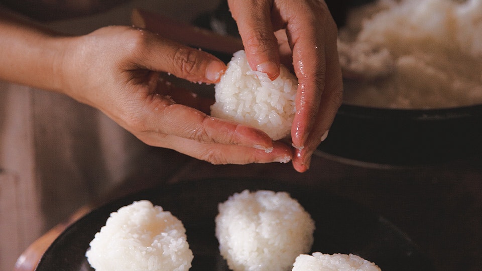 お米を塩むすびで味わいましょう。「手の平にお米をとり、ほぼ力を入れず、1回、2回と結ぶだけ。形は少々不格好でも、これがいちばん好き」と近藤さん。さっそく頰張ると、口のなかでほろりとほどけ、お米ひと粒ずつの存在感が際立ちます。塩だけで十分に引き立てられた、お米のうまみと甘み。究極にシンプルなごちそうです。塩むすびは「辛めの塩加減で外側部分に塩をつける要領で。もしあれば、パリッとした海苔で巻いて。それだけでもう最高。毎日だって食べられます」。ちなみにお茶碗でいただく時は、炊きたてほかほかのお米に、おろしたての生わさびをのせていただくのが大好物です。