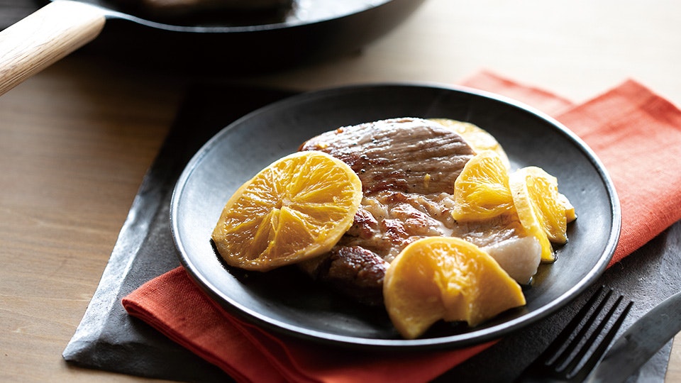 豚肉を使いますが、こってりする重い感じはなく、また塩気が足りないな、という感じもなく、ほどよい風味があります。そんな「さっぱりとしたうまみ」をさらに後押ししてくれるのが、オレンジの存在。豚肉料理のマンネリから少しだけ抜け出したようなレシピ、いかがですか?
