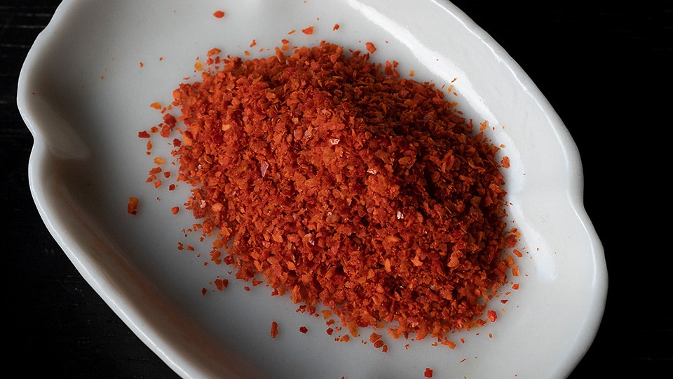 「普通は粗挽きの韓国産赤唐辛子を使うのだけど、手に入りにくい方もいらっしゃるだろうから、今回は一味唐辛子にしてみたの」