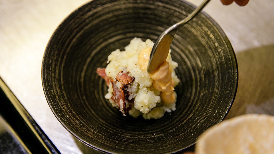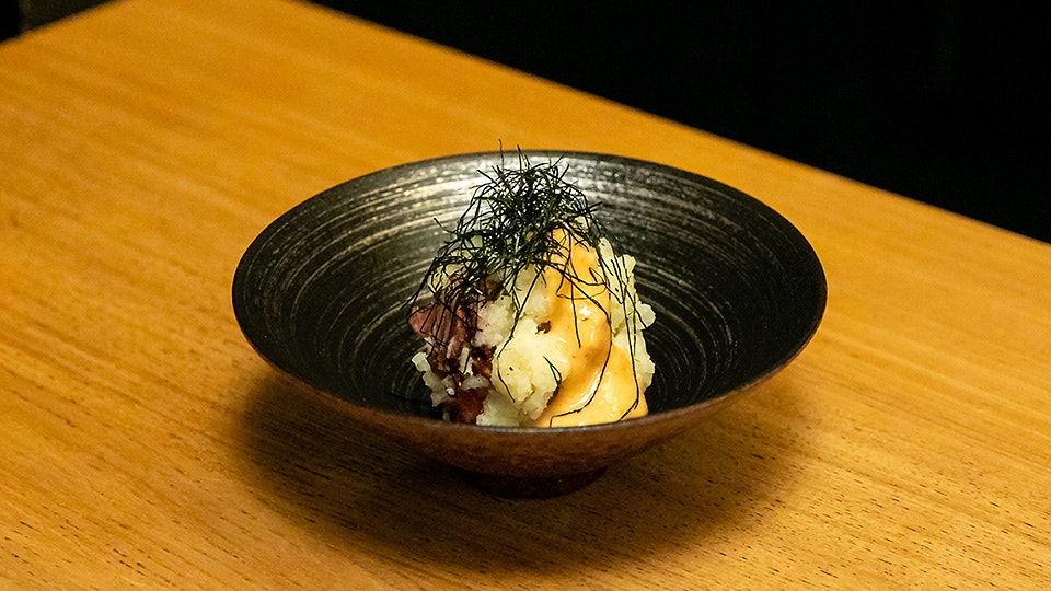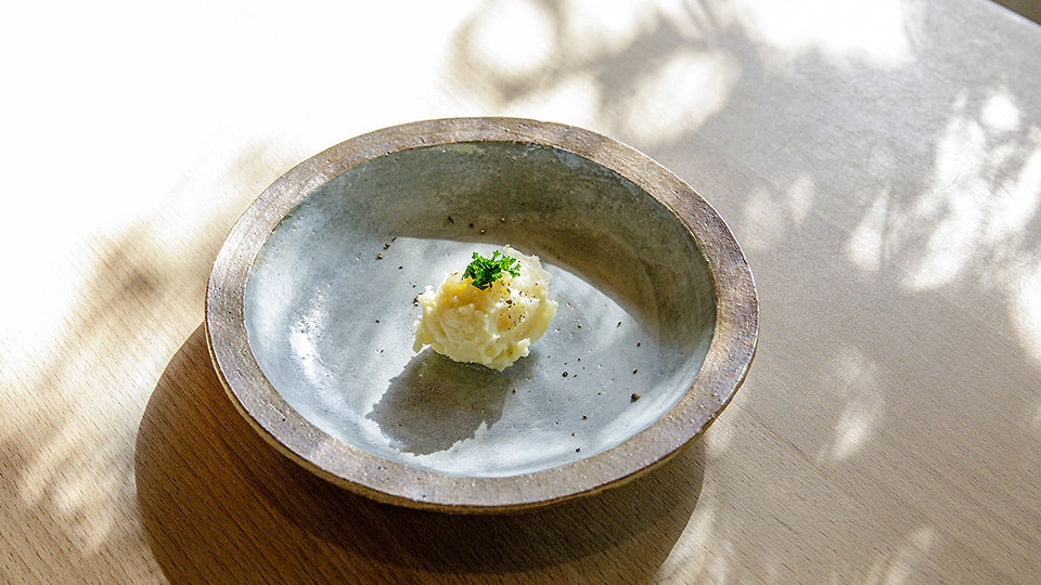 「ただ、今回はだしが主役ということで、あったかいポテサラにしてみようと思いました」と言うのは、料理人の芳野泰士さん。