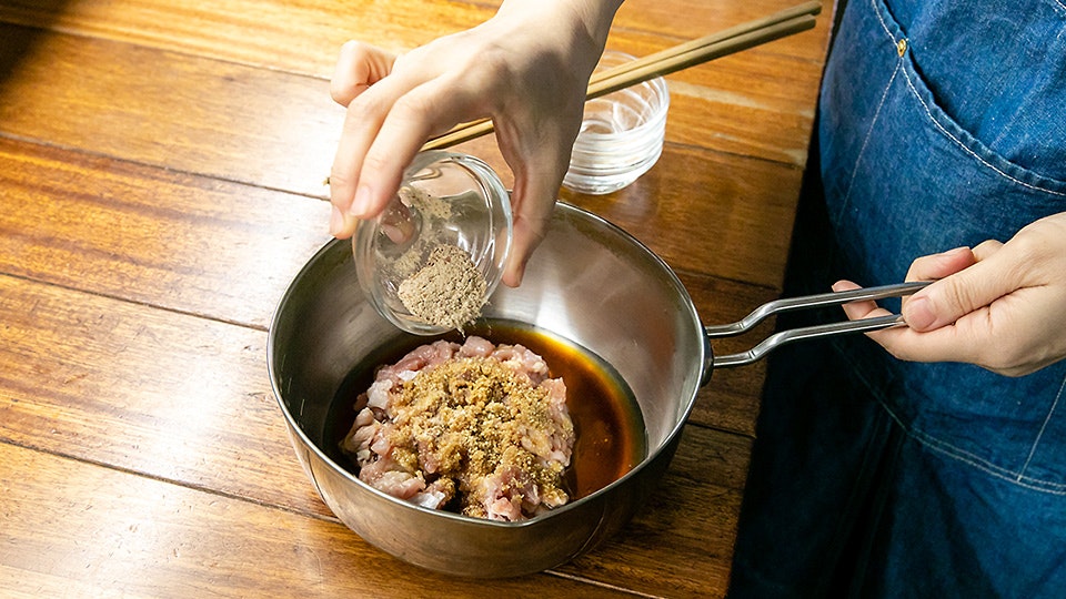 さらにタレは、ふだんお店で出しているヤムウンセン(春雨のサラダ)で使われているものをベースに、マヨネーズを加えてアレンジ。「レモンの酸味は効かせて、家庭用に辛味は少し抑えめにしています」本来は生の唐辛子がよいとのことですが、なければ一味唐辛子でもOK。