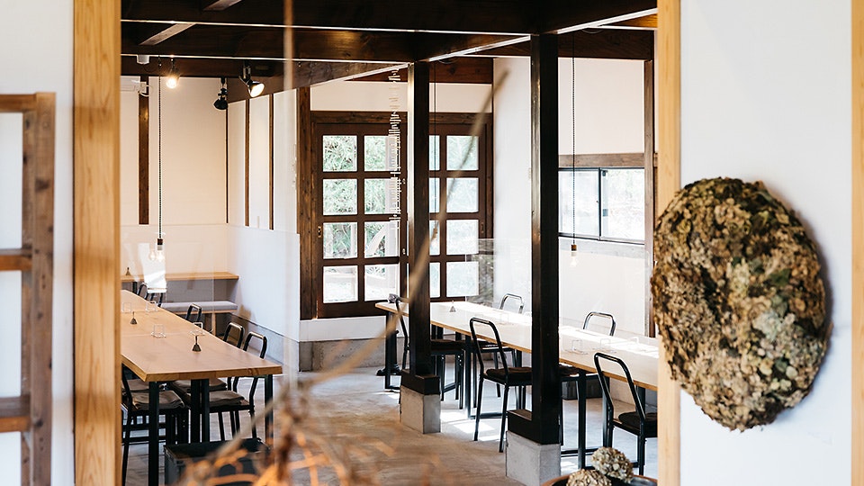 博多駅から電車で約30分。うららかな緑富む山あいに、ぽつねんとある古い民家を改装した趣あるお店。実はここ、ハンバーガー屋さんなのです。