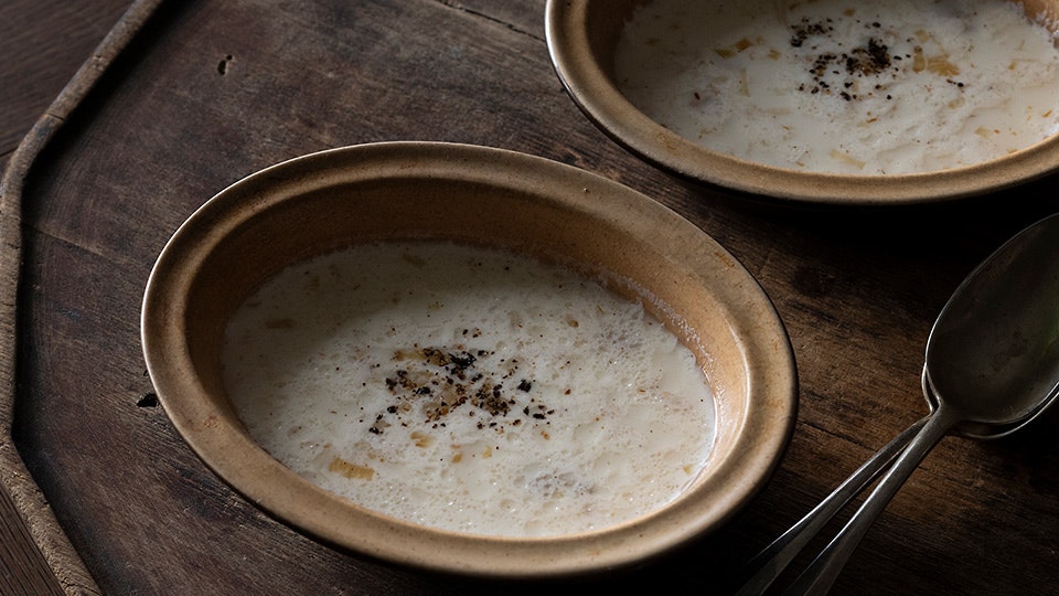 「じっくり加熱した玉ねぎの甘さときのこの風味を、ふんわり感じるスープ。冷製にしても美味しいんですよ」