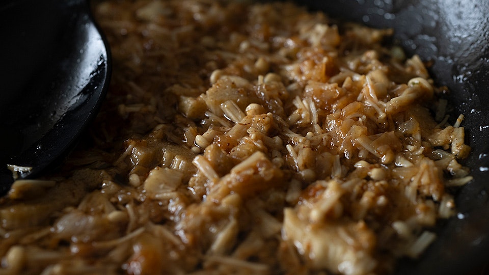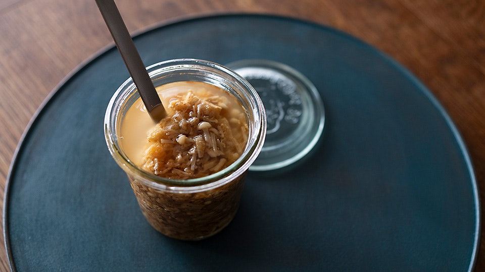 食べる直前にさらにみそきのこだしオイルをのせればできあがり。