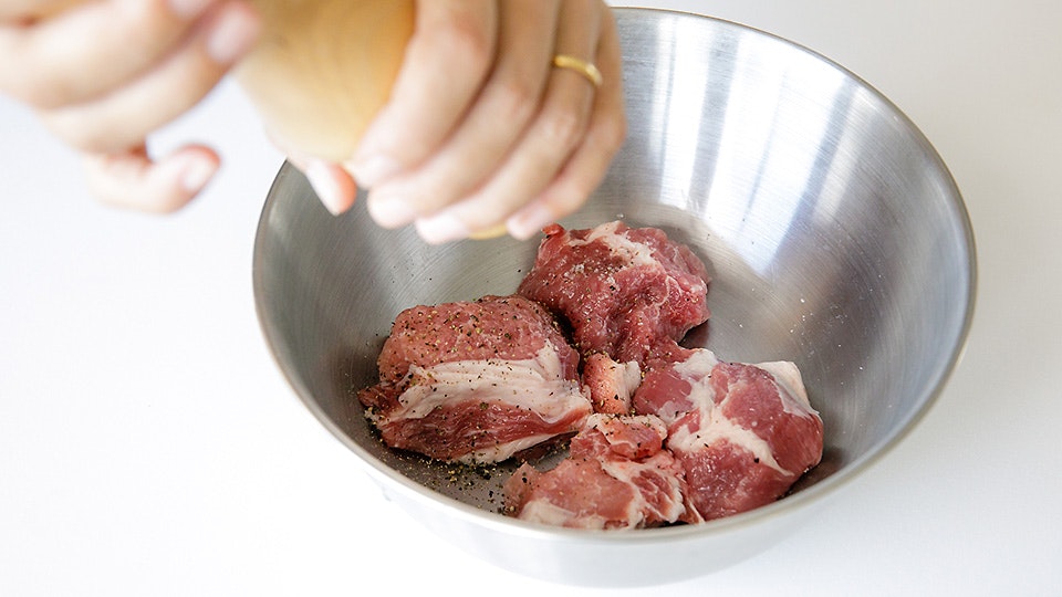 長時間煮込むことを前提とするなら、脂身の多い肩ロースやバラなどのブロック肉がおすすめ。「ヒレ肉は煮込みすぎるとパサパサになってしまうので、使いたいなら短めに煮込むほうがいいかもですね」