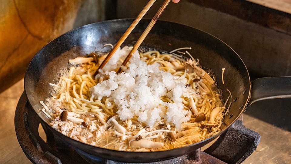 「だしで炊く煮込み麺のような一品です。油は香りづけのみ、大根おろしでさっぱりといただけますよ」。
