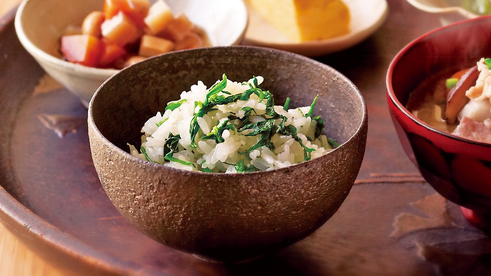 せりの爽やかさ、ほろ苦さを生かした「だし炊きごはん」はいかがでしょう?「黄金比のだし」と一緒に炊くだけで、せりの繊細な風味が引き立ち、季節を感じる上品な一品に。食感も小気味良いリズムを奏でます。