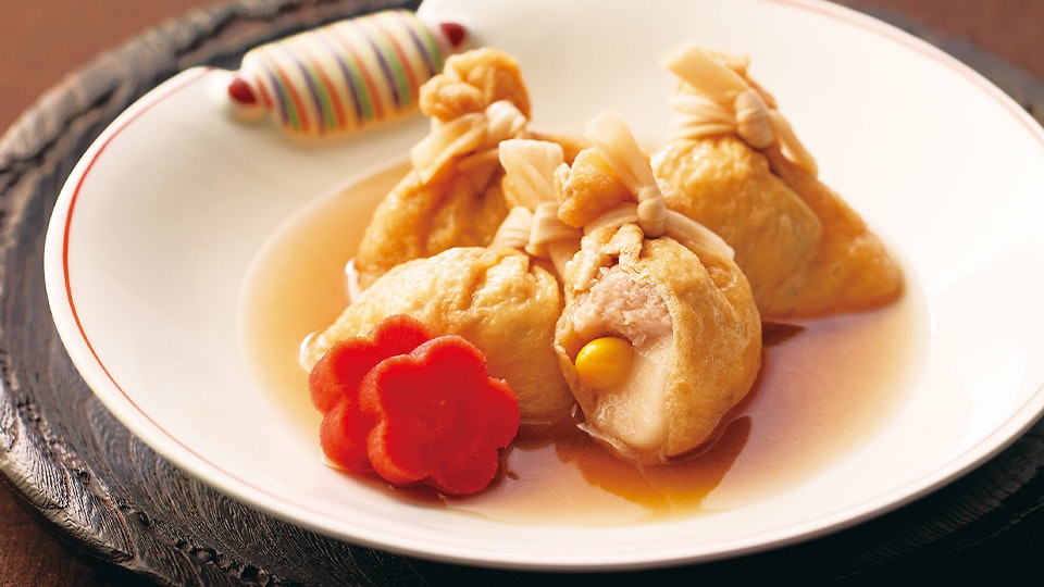 袋状に開いた油揚げに具材を入れて煮る「福袋煮」。何が入っているか、“食べるまでのお楽しみ”が食卓を盛り上げてくれます。