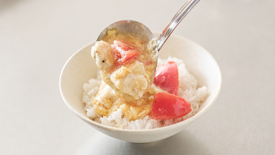 「GABAが豊富なトマトを使いたかったのですが、とくに熱を加えてとろっとなった状態が、私は好きで。色どりもいいですし、あんかけとも相性よく、あったまります」