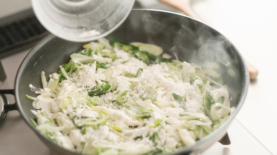 これをバターで炒め、しんなりしたら弱火にして薄力粉を加えて