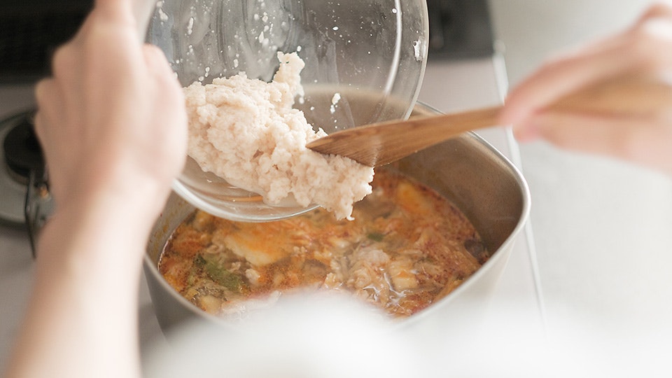 まずは、GABAが豊富なキムチと、体をあたためてくれる生姜を使ったスープです。