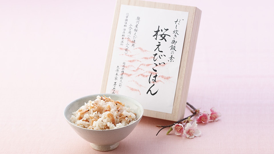 香り高く、雑味のない澄んだ味わいの「極みだし」と、白醤油で仕上げた「専用つゆ」と一緒に炊き上げるだけ。だしがよく染みたごはんから、ふわっと桜えびの芳醇な香りが広がります。桜えびをごはんと丸ごと味わう、春ならではの幸せをお届けします。
