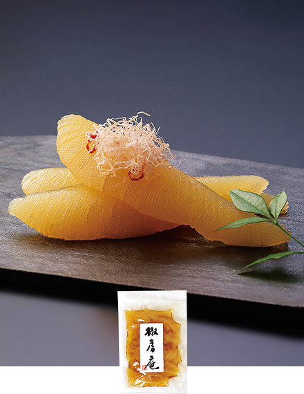 醤油と鰹のうまみがきいた上品なたれで味付けしました。コリコリとした歯応えをお楽しみください。