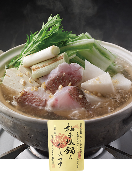 柚子の風味が引き立つ、すっきりとしたうまみのだし。仕上げの柚子皮チップで香りが華やぎます。久原本家公式アプリの鍋投票企画で1位を獲得した人気鍋です。
