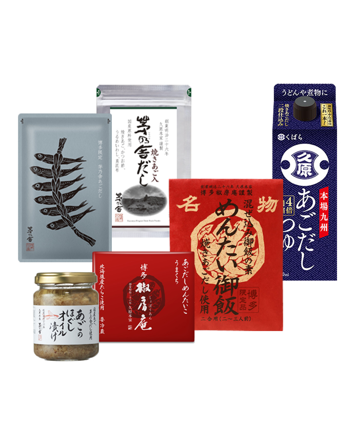 久原本家グループ(茅乃舎・椒房庵・くばら)の、あごを使ったおすすめ商品をネット限定セットでご用意いたしました。
