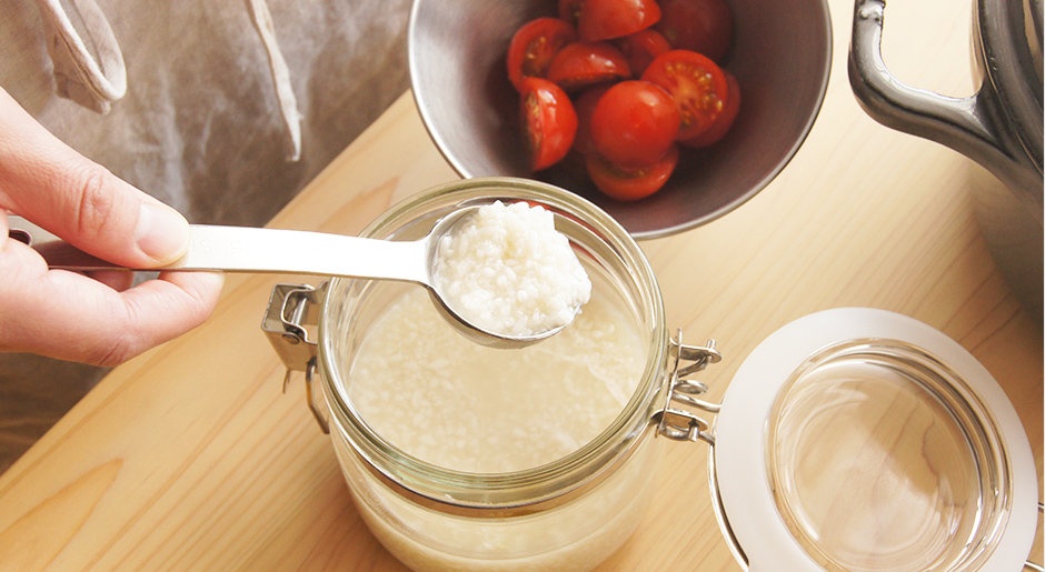 用意するのは、お湯と米糀だけ。おいしい甘酒が、簡単につくれます。