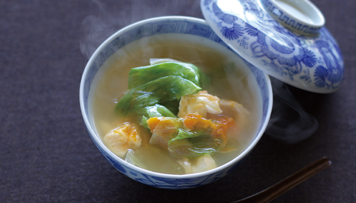 この燻し鶏の豊かなうまみに、ほたて、葱や生姜の香味も加えました。鶏だしの上品さを備えながら、より中華らしいだしに仕上げています。普段はだしを使わない中華にも取り入れることで、調味料を控えられ、やさしい中華ができあがります。