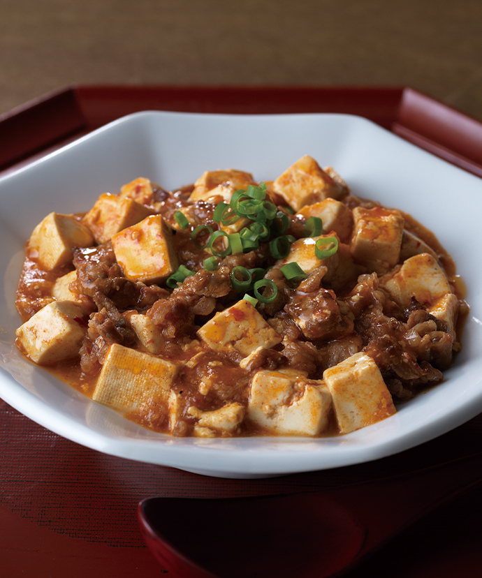 麻婆豆腐にもだしを使えば、食べ心地が軽いやさしい中華味に。辛みとコクも効いています。