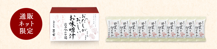 お湯を注ぐだけで、つくりたてのおいしさに。だしがきいた汁ものをお手軽に。
