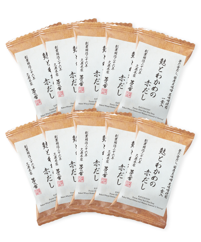 鰹のうまみ豊かな茅乃舎だしとの相性を考えた程よい酸味の豆味噌を合わせ、具は焼き麩とわかめでシンプルに。赤だしを手軽にお楽しみいただけます。