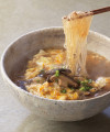 - もっちりと弾力のある食感ととぅるんとした喉ごし。食べごたえのある芋由来の春雨麺ができました。生姜の香り広がるしょうゆ味は、やさしくほっとする味わいです。