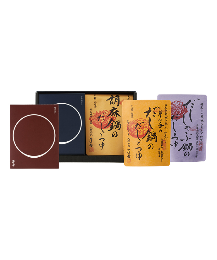 贈答箱入 茅乃舎だし・野菜だし・鍋3種(だし鍋・胡麻鍋・だししゃぶ鍋)ギフト