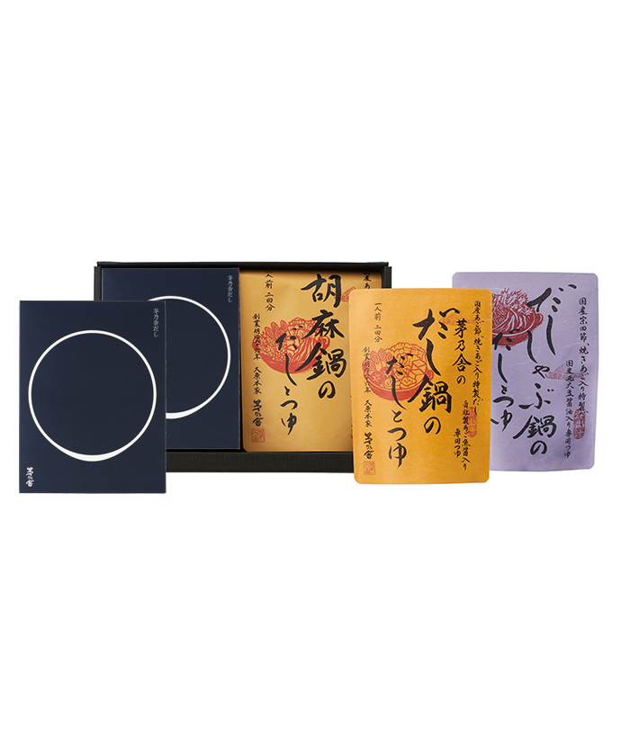 贈答箱入 茅乃舎だし×2個・鍋3種(だし鍋・胡麻鍋・だししゃぶ鍋)ギフト