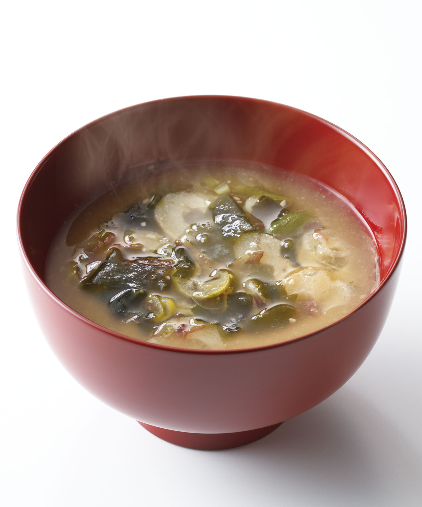茅乃舎だしに米味噌を合わせました。とろろ昆布など7種の海草を使い、磯の風味豊かに仕上げたフリーズドライの味噌汁です。