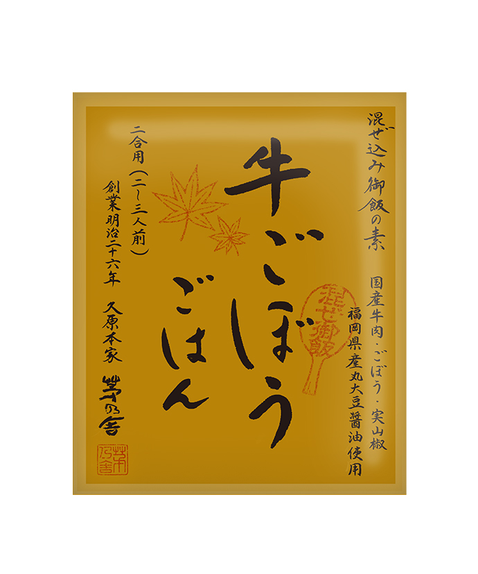 毎年大好評、上品な甘辛さの牛ごぼうごはんです。国産の牛肉とごぼうを福岡県産の丸大豆醤油で味つけし、実山椒で風味豊かに仕上げています。