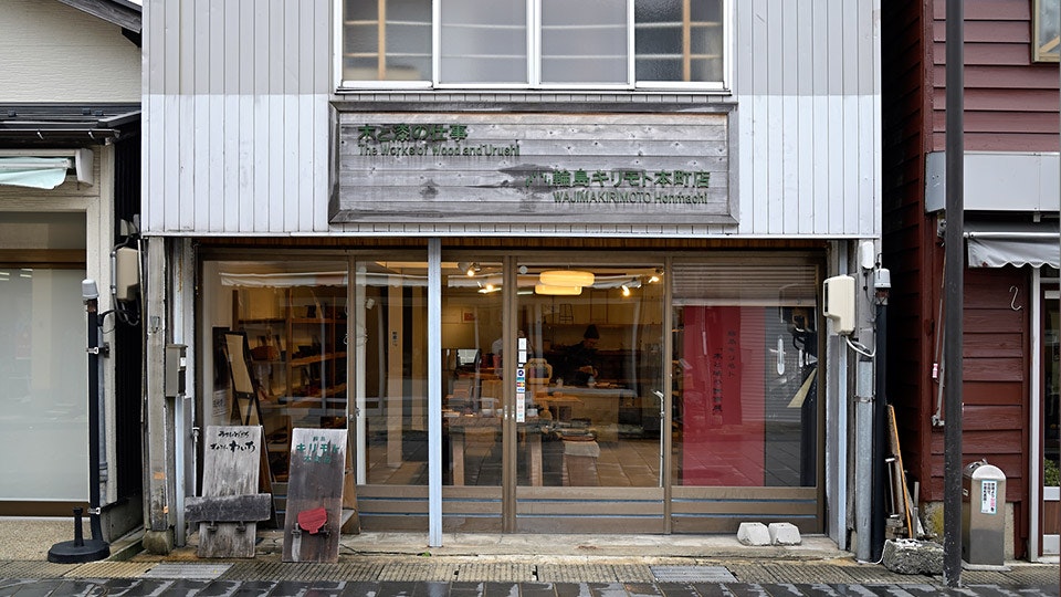 石川県輪島市、通称、「朝市通り」沿いにある輪島キリモトの本町店。1972年までは工房だった場所をリノベーションし、2010年オープン。