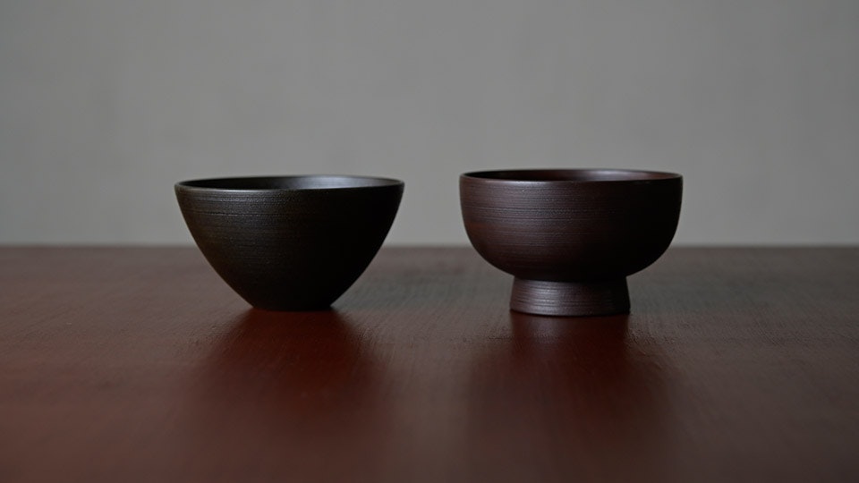 輪島キリモトの「千すじやま椀」(左)と「千すじ汁椀」(右)
