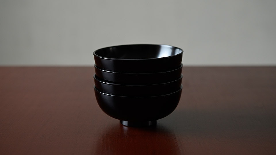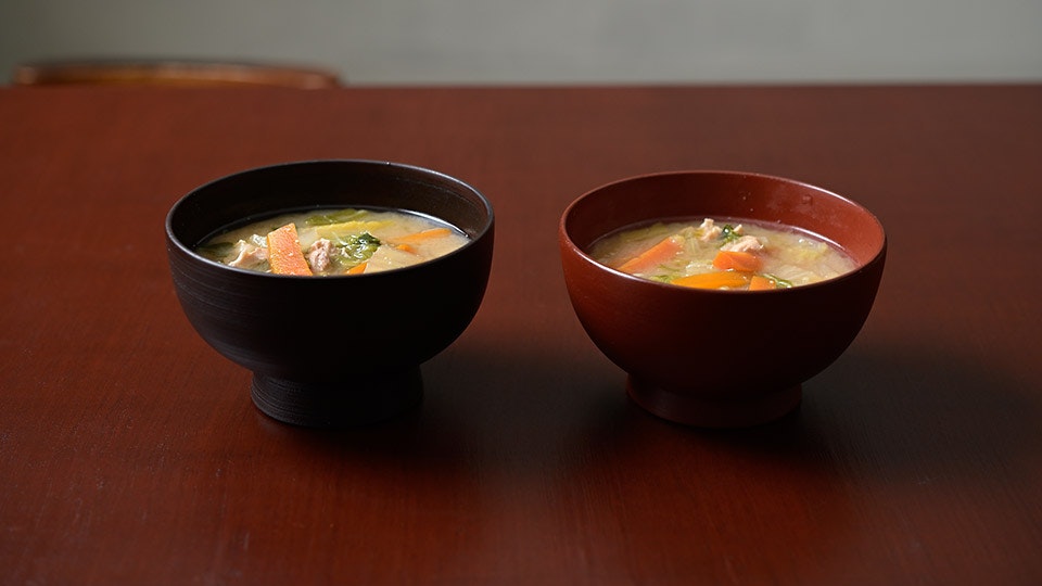 桐本家の食卓に並ぶ漆器。石川県の定番、桐本家で馴染みが深い野菜入りの味噌で仕上げた味噌汁。普段の暮らしに馴染んだ、何気なくかけがえのない存在。