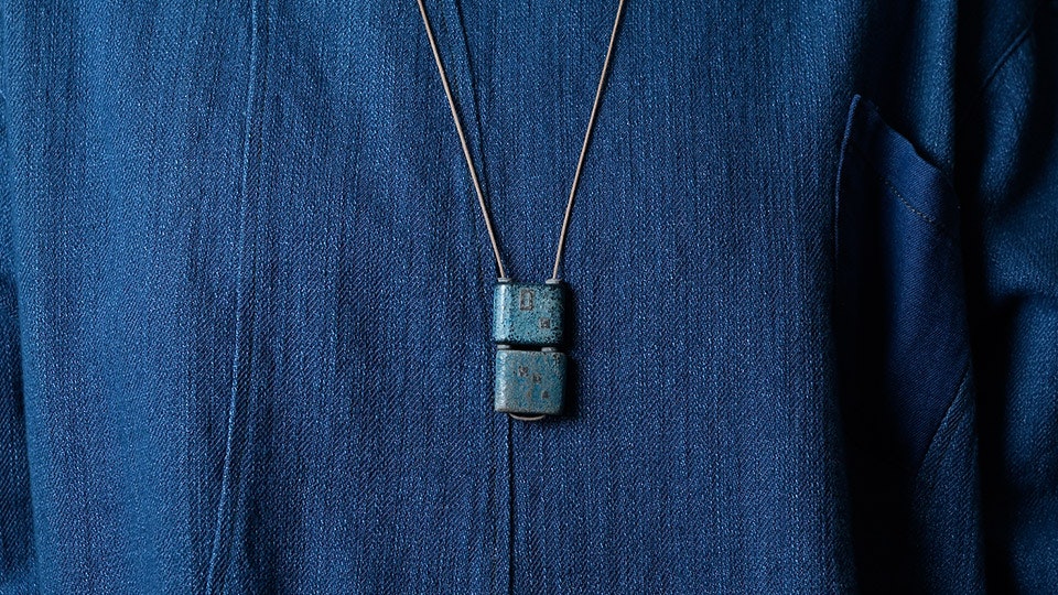 肩こりで、金属でできたアクセサリーはどうも苦手だという7代目の奥さま。漆器でできているため、軽くてじゃまにならないことに加えて、少し入った模様やコットンコードの雰囲気もお気に入り。5年ほど前から、こうした漆器のアクセサリーを作っている加藤修央さんはもともと木工職人。現在は、輪島キリモトの本町店担当のスタッフでもある。本町店には、「漆器のアクセサリーはありますか」と訪れる人も多いとか。
