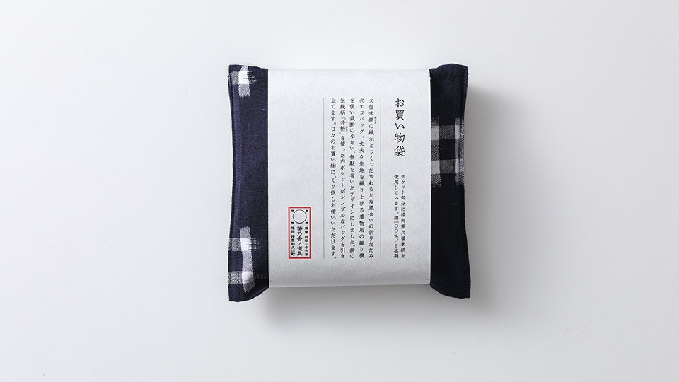 ポケッタブルの収納部分は、久留米絣を代表する井桁柄。茅乃舎が大事にしたいことを坂田夫妻が丁寧に汲みとっていただき、毎日使いたくなるお買い物袋へと仕上げてくださった。