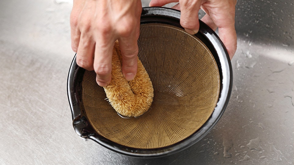 たわしを櫛目に沿って動かし、洗い流します。よく乾かして風通しの良い場所に保管すれば、カビの心配もありません。
