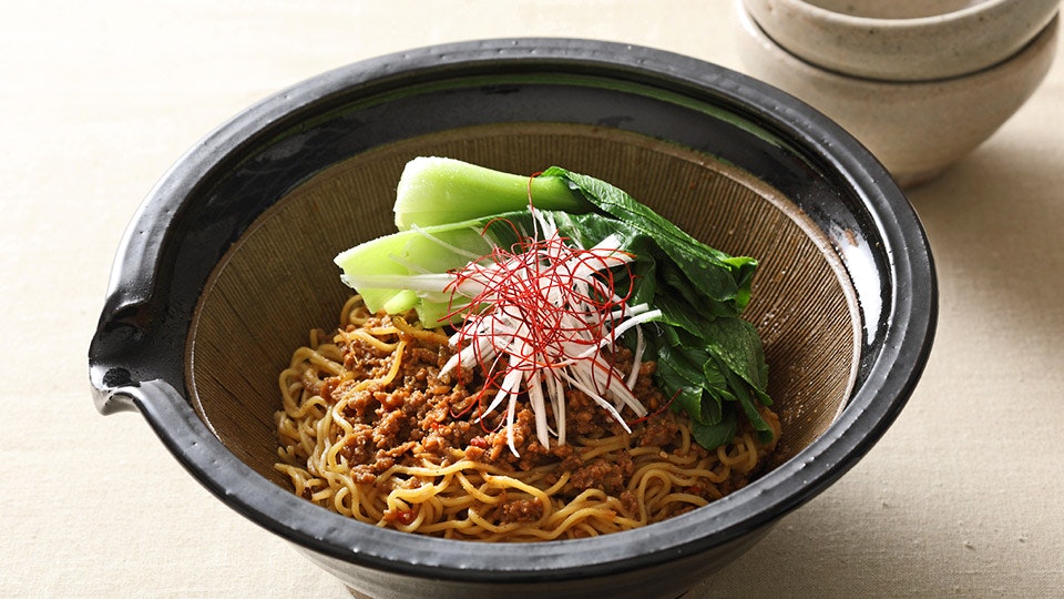 すりたての煎り胡麻と肉味噌、茹でた麺を擂鉢の中で混ぜ合わせてつくる炸醤(ジャージャー)麺。「鶏だし」のコクとうまみが加わった濃厚な味わいと、唐辛子の刺激が食欲をそそります。