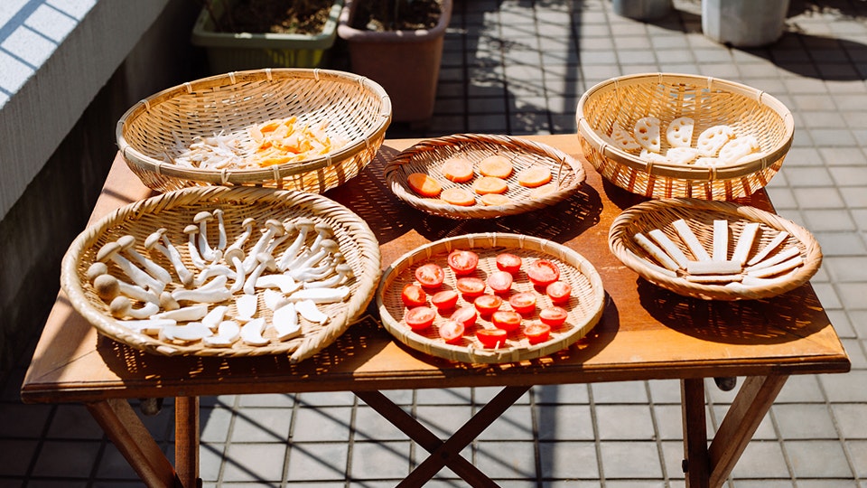 実は簡単、干し野菜。野菜本来の味わいが濃く、常備したいおいしさです。干す場所がない場合は家庭用の乾燥機を使えば、室内で効率よく干し野菜が作れます。窓際で少しでも日差しを当ててあげましょう。