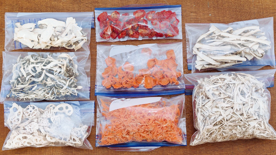 密閉できる袋や容器に乾燥剤を入れて保存しましょう。水分が飛んだものは常温でも良いですが、きのこ類は冷蔵・冷凍がおすすめです。