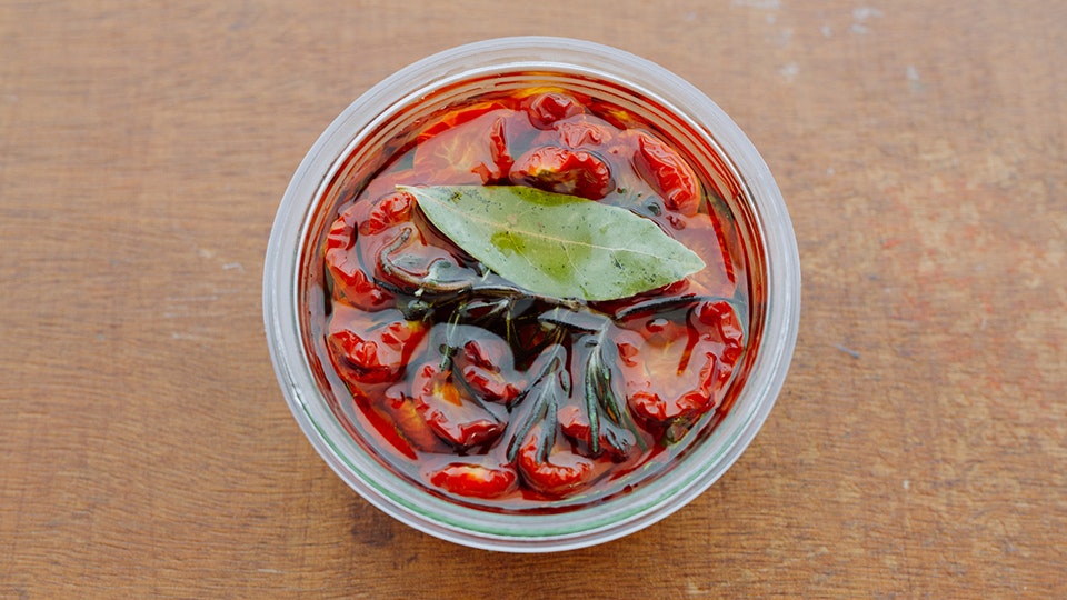 ミニトマトはセミドライな仕上がりなので、オイル漬けにしても。
